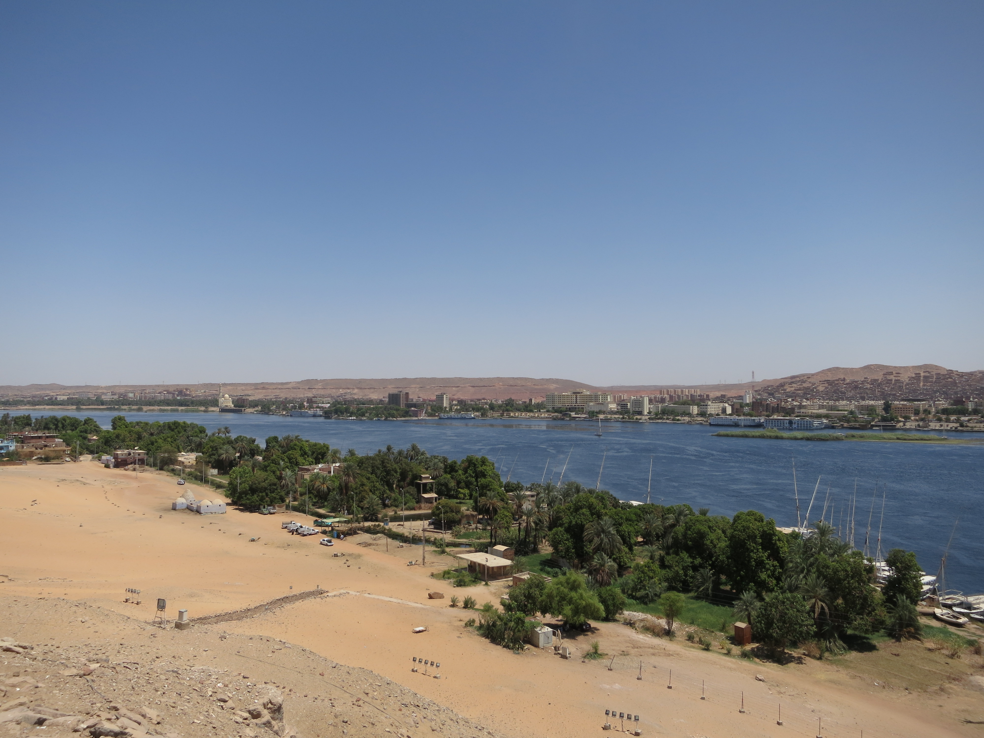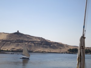 Other than Abu Simbel, we did little in Aswan other than acclimatise to the heat and to the wearyingly relentless attempts to sell us this, take us for a ride on that, and generally find a way, any way (legitimate or otherwise), to get as much money as possible from my pocket into someone else’s. We did get a boat across the river to explore the Tombs of the Nobles – that was before Abu Simbel, and was interesting both as our first live experience of Egyptian history and because it also offered some good views across and up the Nile. But other than that, once our police convoy safely delivered us back from our meeting with Ramesses, we relaxed and got ourselves ready for a train ride up to Luxor. Job done, next bit of history, please…