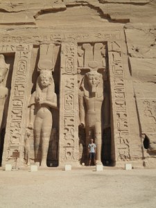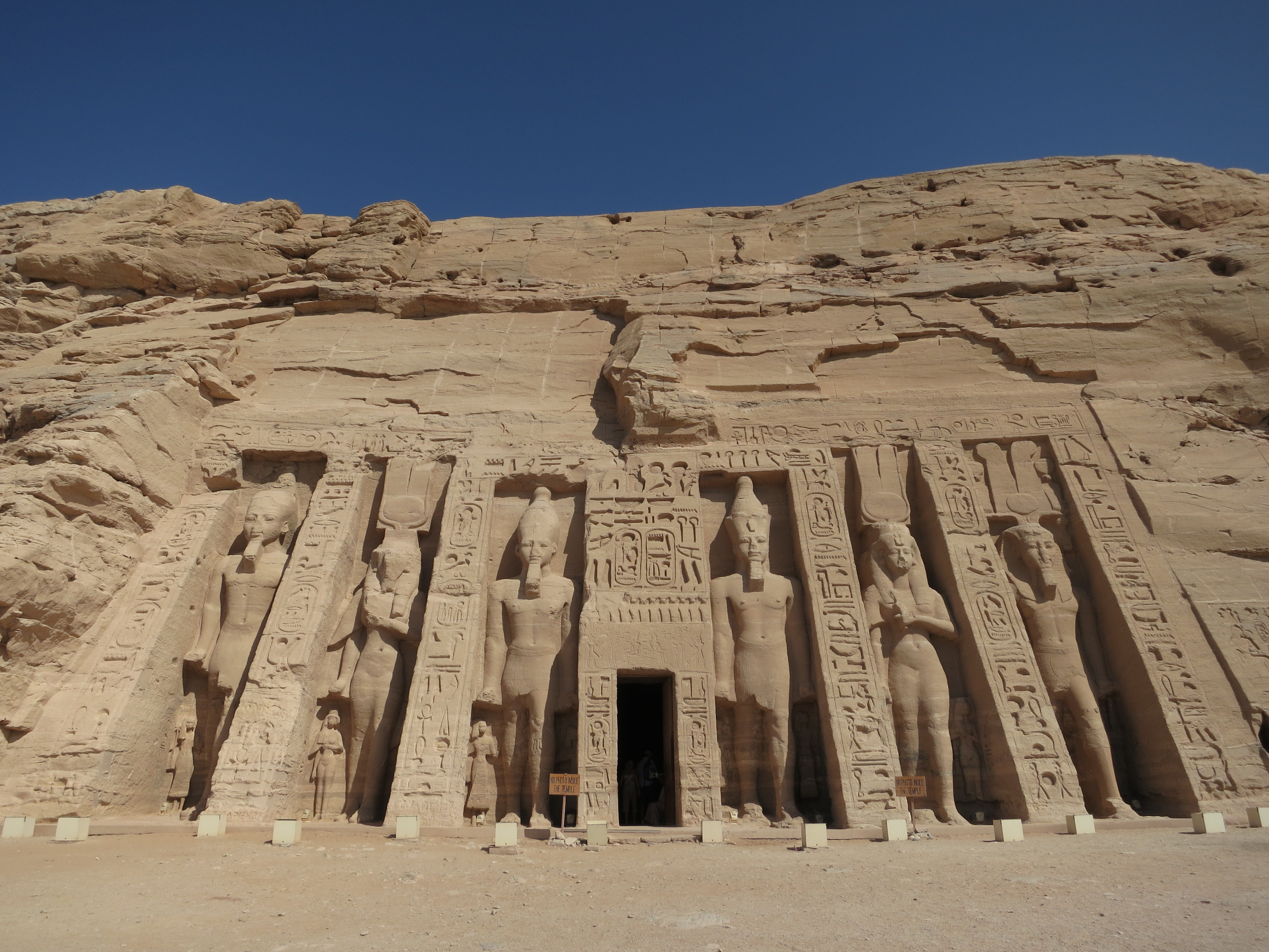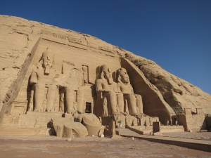 Abu Simbel is two temples carved into the rockface built to face (and overawe, presumably) Egypt’s potential invaders to the south. One temple for Ramesses II (aka Ramesses the Great), and one for his wife Nefertari, of whom he was evidently rather fond. (Moreso than one imagines were the slaves tasked with the more menial aspects of demonstrating Ramesses’ devotion, anyhow.)