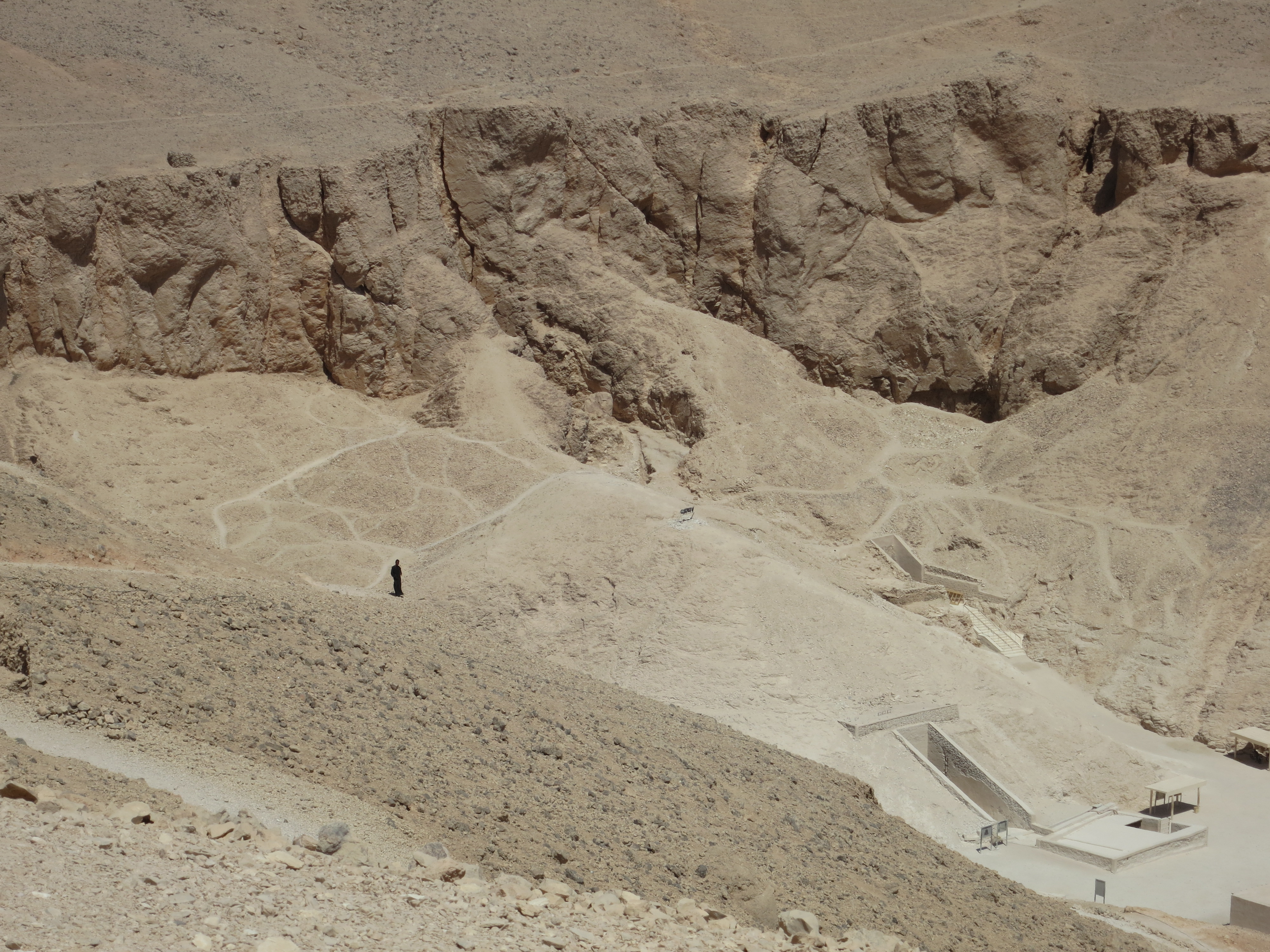 The Temple of Hatshepsut. Our wander from the Valley of the Kings had taken us to the edge of the cliff on the skyline directly above the temple.